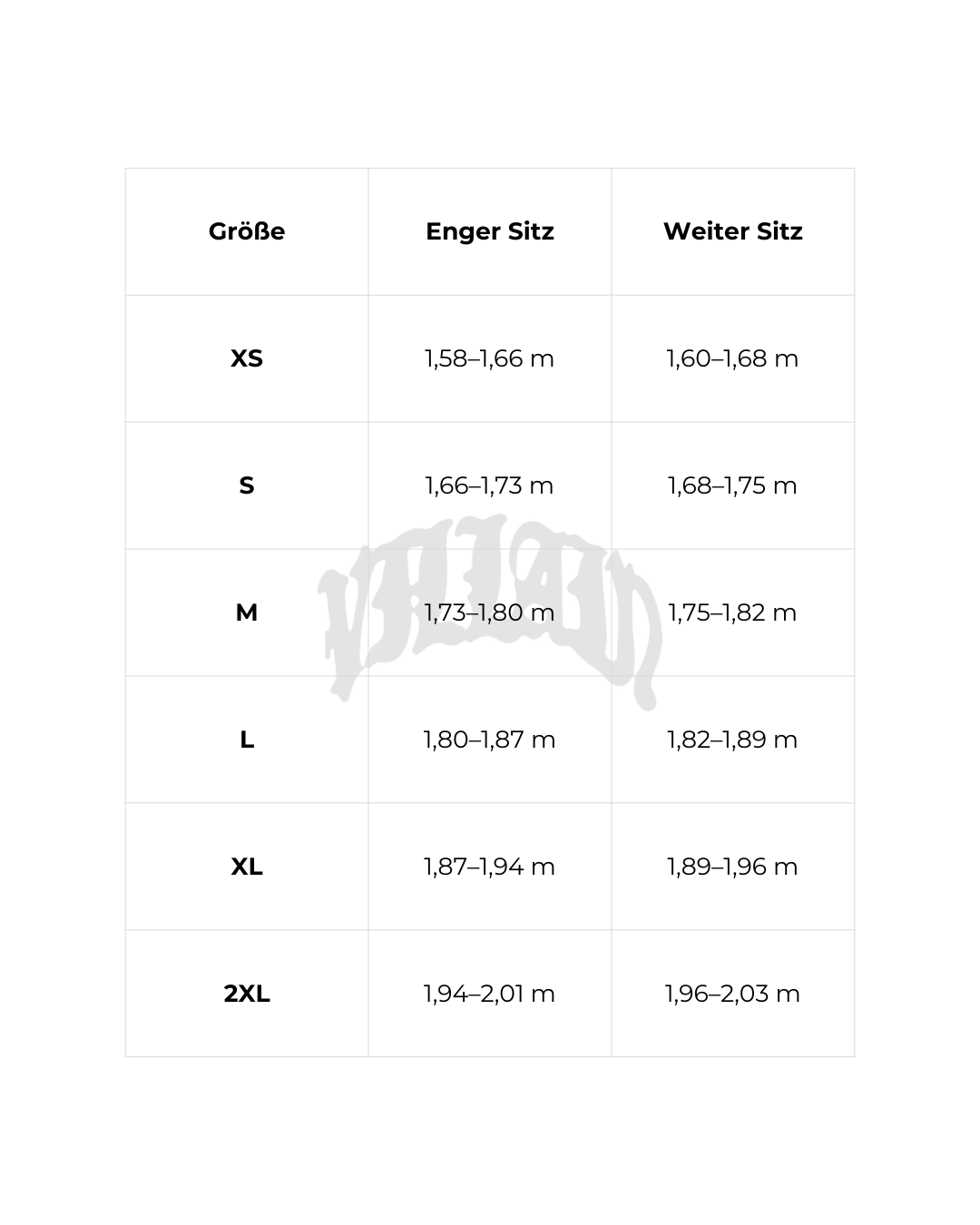 Wenn du zwischen zwei Größen liegst, wähle die größere für mehr Komfort.